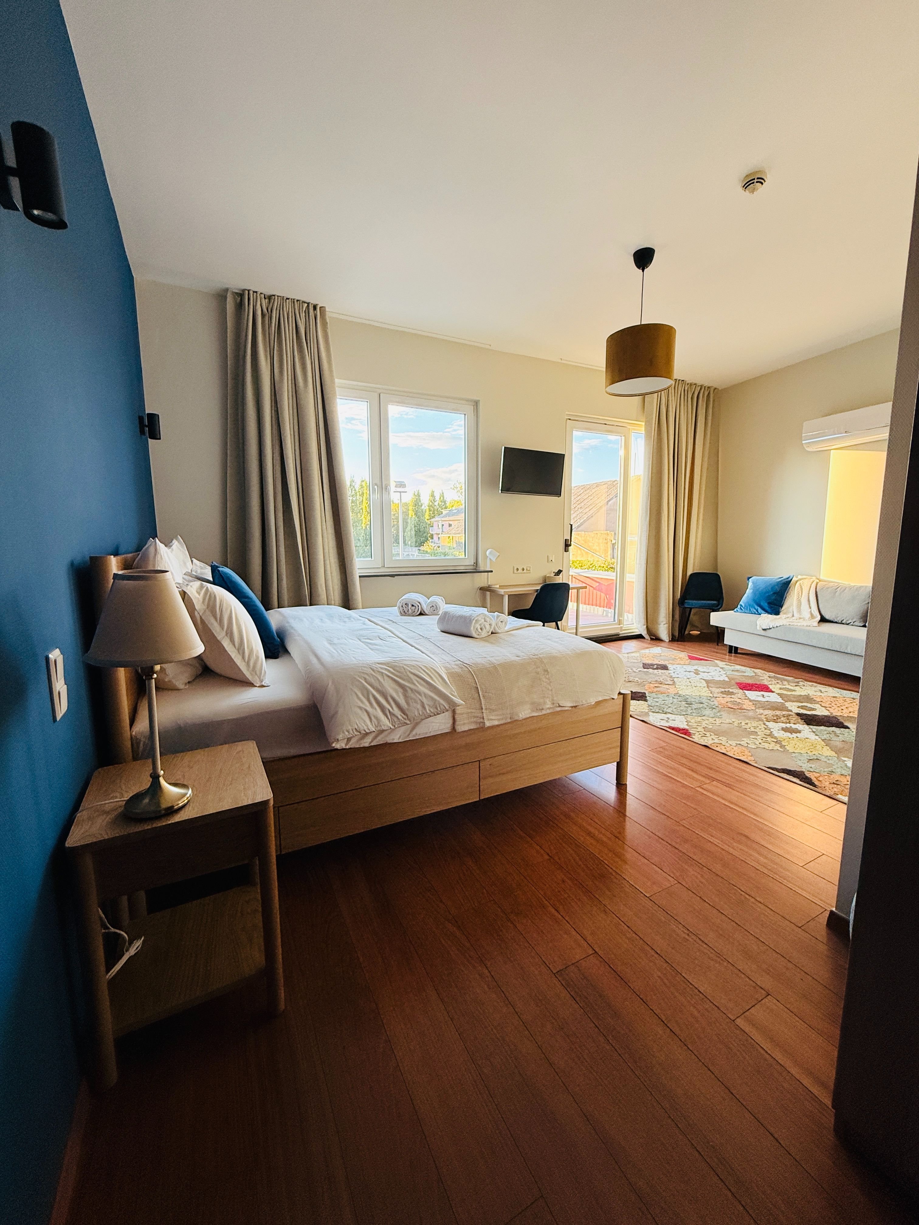 Quand la ville s’éveille doucement, la lumière caresse les murs et le calme règne encore. Une chambre lumineuse et paisible, parfaite pour commencer la journée du bon pied.
