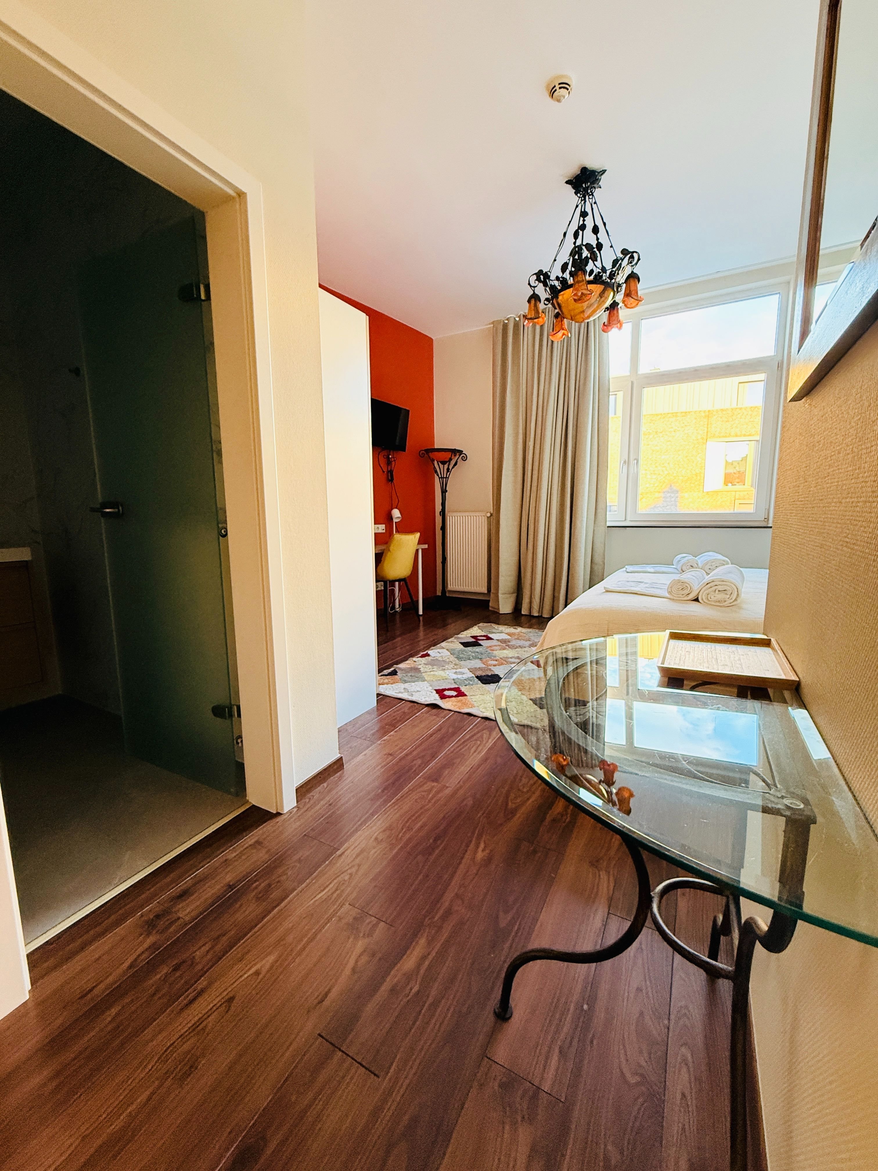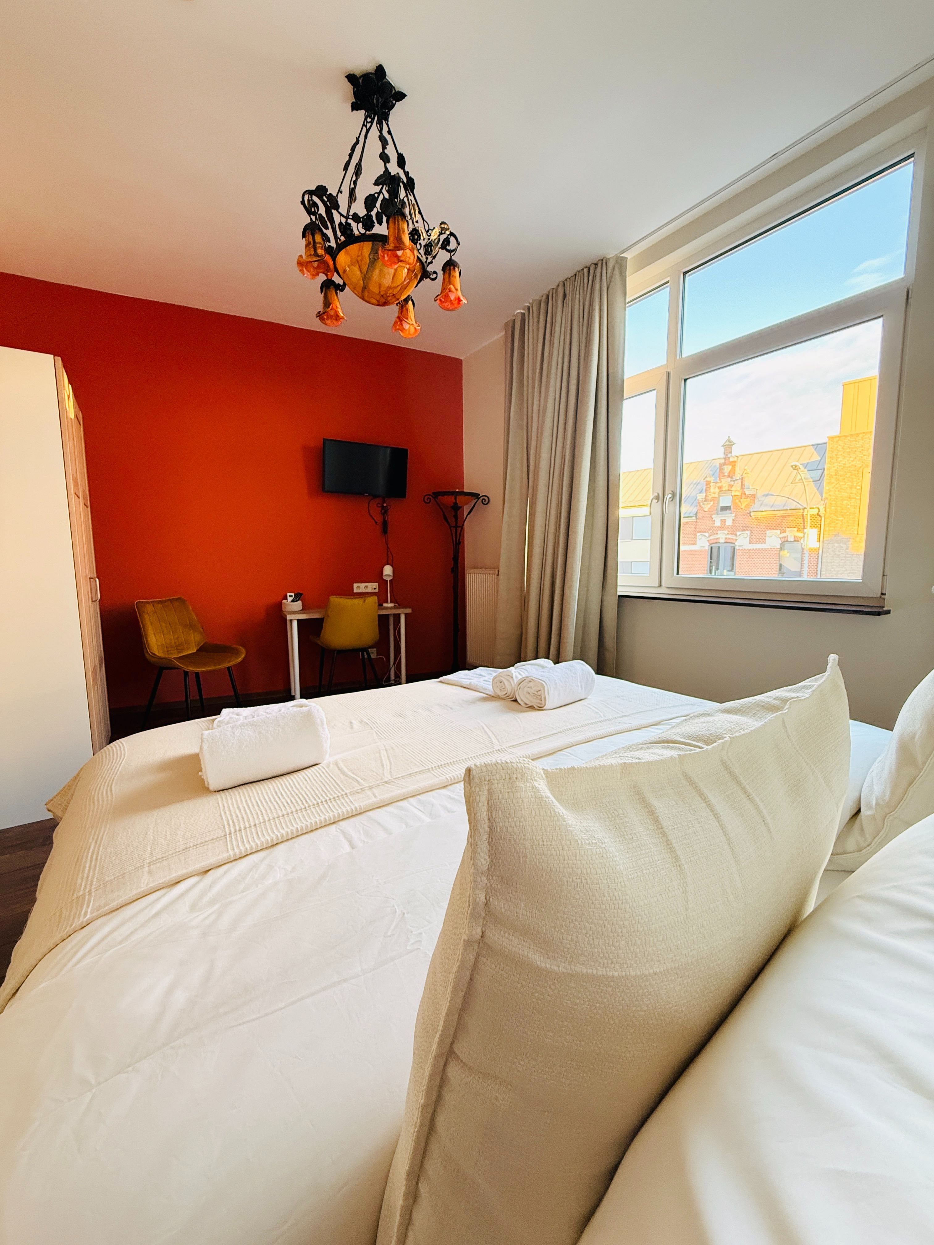 Quand la ville s’éveille doucement, la lumière caresse les murs et le calme règne encore. Une chambre lumineuse et paisible, parfaite pour commencer la journée du bon pied.